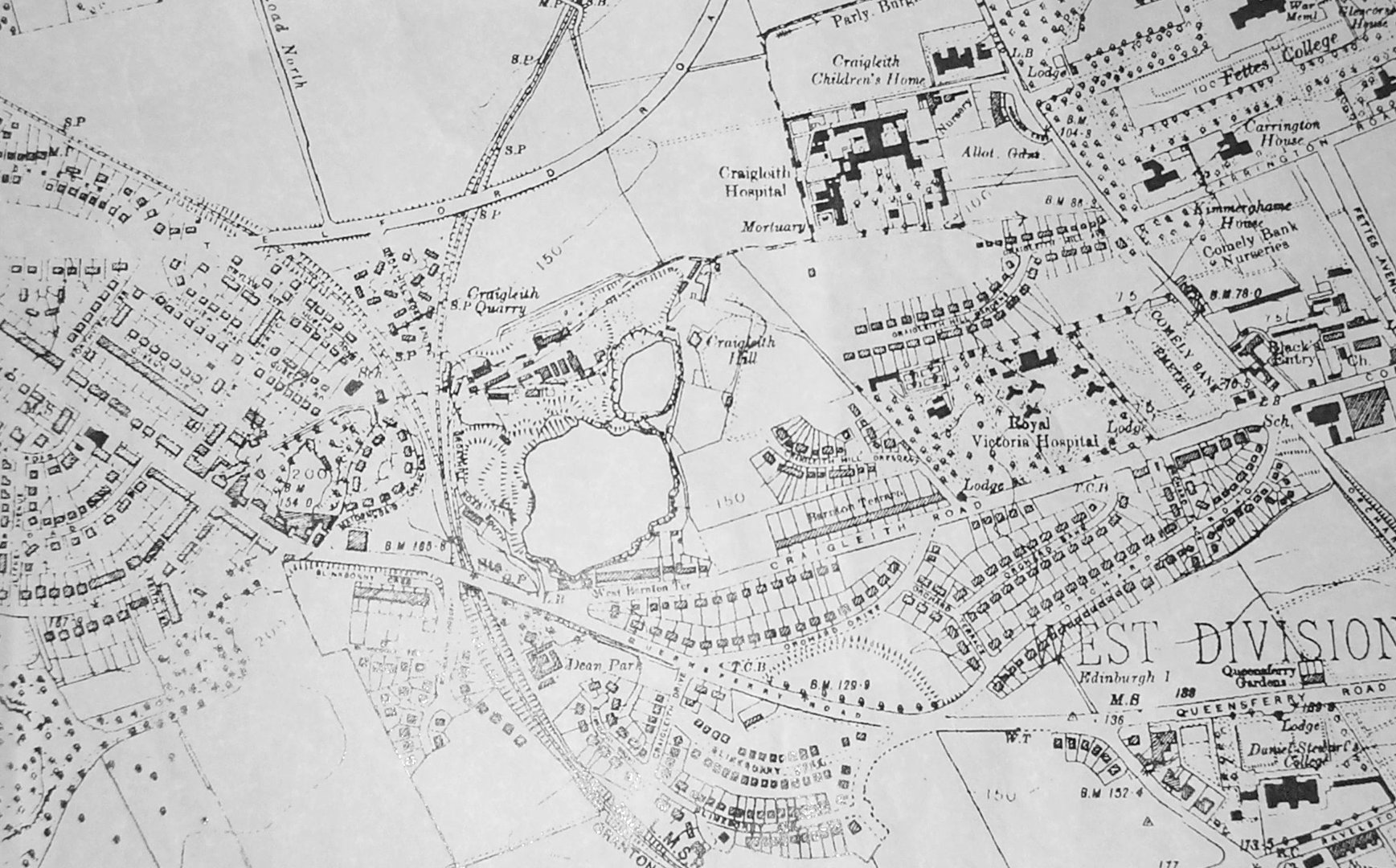 1949 | Plan shows Craigleith Hill House, Craigleith Hospital, Craigleith Quarry , Craigleith Childrens Home, Victoria Hospital, West Barnton Terrace, Barnton Terrace. C. H. Park, Craigleith Hill and a few house in the Crescent have still to be built. |
